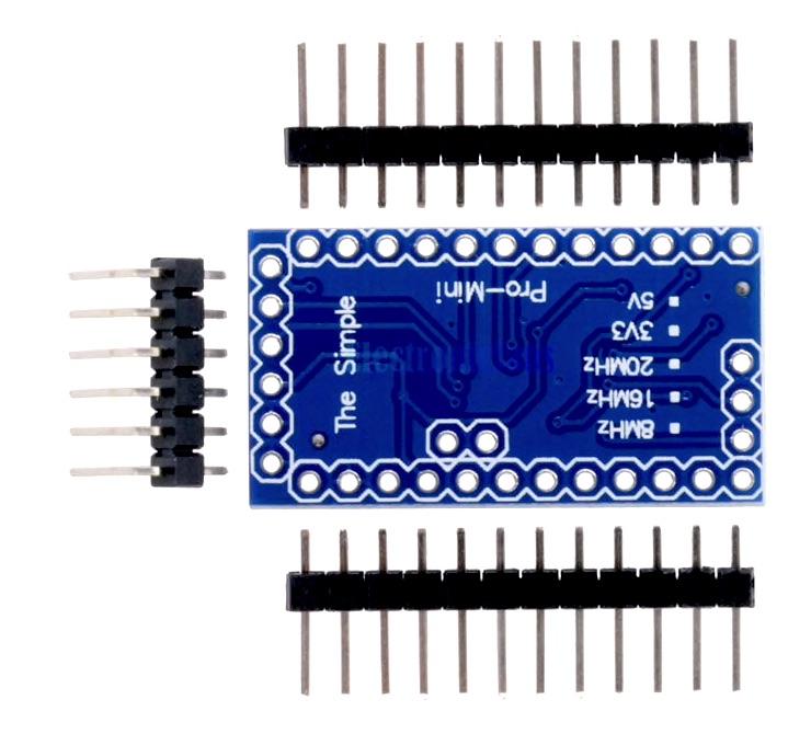The Pro Mini 5V/16MHz is a microcontroller board that operates at 5V with a 16MHz bootloader. The Pro Mini ATmega328P comes without connectors.