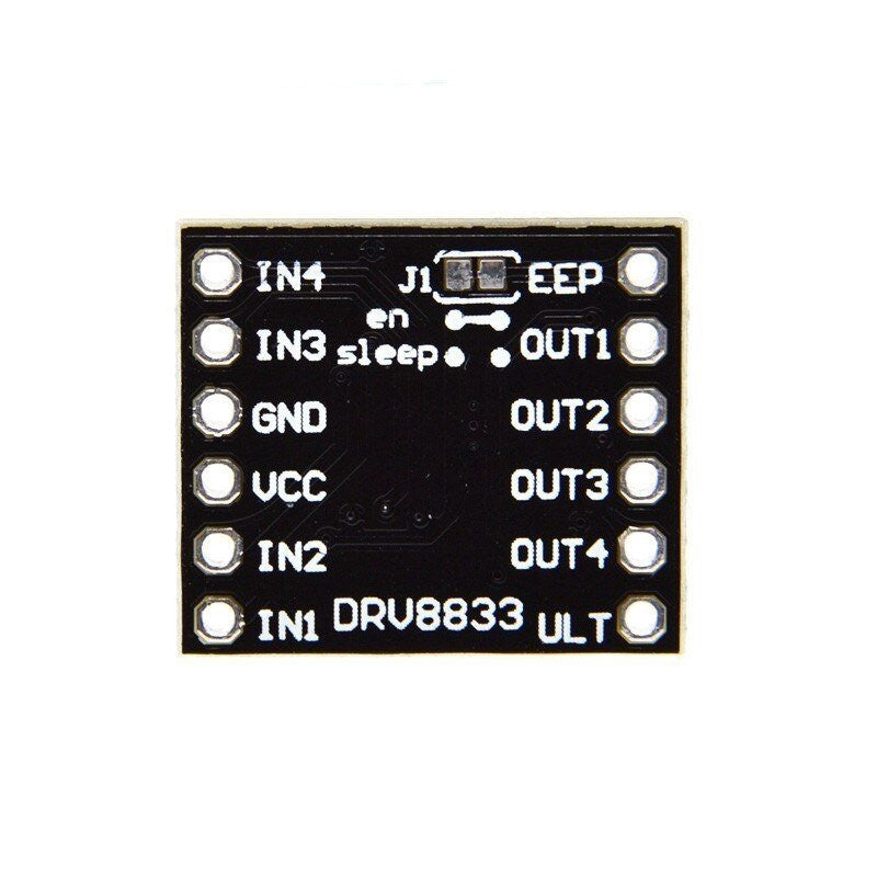 The DRV8833 is a dual H-bridge motor driver IC designed for bidirectional control of two brushed DC motors operating between 2.7V and 10.8V. It provides a continuous current of up to 1.2 A per channel, with the ability to handle peak currents of up to 2 A per channel for short durations. This makes it well-suited for small, low-voltage motors.