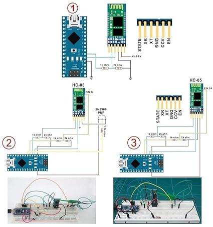 You can easily switch between these two modes. Slave mode is the default setting. Modes can be changed with AT commands. In slave mode, the HC05 cannot initiate connections to other Bluetooth devices but can accept connections. Master mode allows you to initiate connections to other devices.