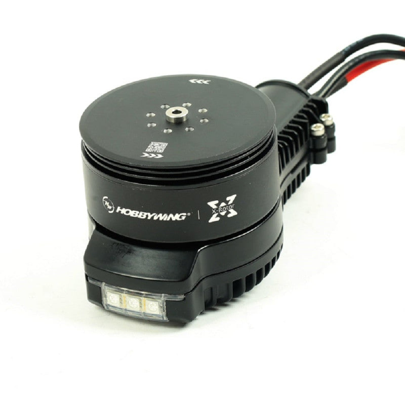 The XRotor X6 brushless power system is designed for agricultural drones, capable of supporting a load of 3 to 5 kg per axis. It delivers a thrust of up to 11.9 kg and is compatible with 28/30 mm carbon fiber tube arms. Rated to IPX7 standards, it is waterproof and dustproof, making it resistant to rain, pesticides, salt spray, sand, dust, mud, and high temperatures, as well as impacts. The Hobbywing XRotor X6 Plus incorporates an algorithm for optimizing the FOC ESC and motor system, enhancing balance. Additionally, it includes multiple protective features such as power-on self-detection, abnormal voltage detection, over-current protection, and motor lock-up prevention, along with real-time data output capabilities.