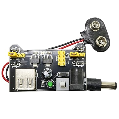 This power supply module for the breadboards has an ON / OFF switch to turn on and off module. It comes with reverse polarity and short circuit protections, which greatly helps during building and testing circuits on the breadboard.