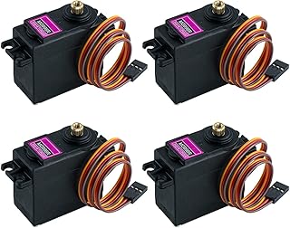 With its metal gearing, the Tower Pro MG996R Digital Metal Gear High Torque Servo Motor (180 Degree Rotation) produces an exceptionally high 10 kg stalling torque in a compact design. The MG996R servo is essentially an improved version of the well-known MG995 servo. It has improved shock- roofing, a revised PCB, and an IC control system that significantly increase its accuracy over the previous model. To enhance dead bandwith and centering, improvements have also been made to the gearing and motor. A 30-cm cable and a 3-pin female header connector ('S' type) that fits most Futaba, JR, GWS, Cirrus, Blue Bird, Blue Arrow, Corona, Berg, Spektrum, and Hitec receivers are included with the unit.