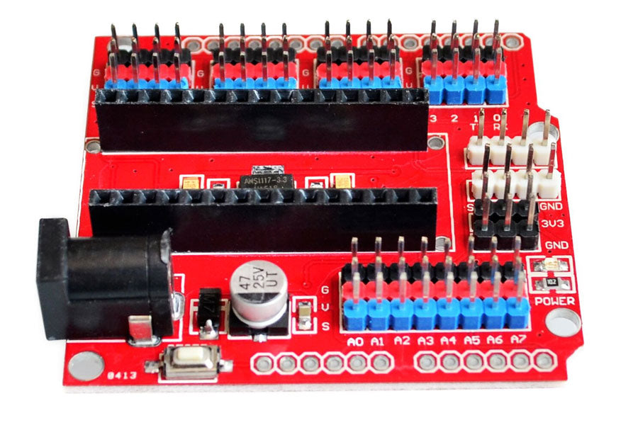 Arduino Nano IO Expansion Shield is specifically designed to facilitate an easy connection between Arduino nano and many other devices. In essence, it expands the Arduino Nano controller to link those devices in a simple and trouble-free manner.
